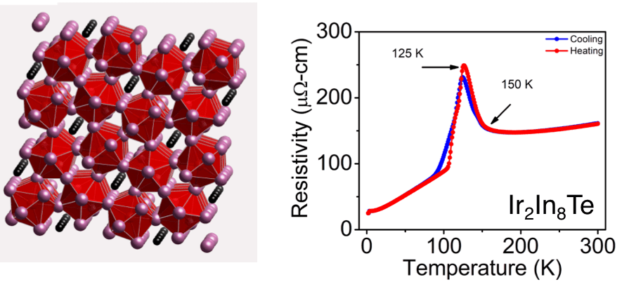 Subchalcogenides are uncommon compounds where the metal atoms are in unusually low formal oxidation states. They bridge the gap between intermetallics and semiconductors and can have unexpected structures and properties because of the exotic nature of their chemical bonding as they contain both metal–metal and metal–main group (e.g., halide, chalcogenide) interactions. Finding new members of this class of materials presents synthetic challenges as attempts to make them often result in phase separation into binary compounds. We overcome this difficulty by utilizing indium as a metal flux to synthesize large (millimeter scale) single crystals of novel subchalcogenide materials. Herein, we report two new compounds Ir2In8Q (Q = Se, Te) and compare their structural and electrical properties to the previously reported Ir2In8S analogue. Ir2In8Se and Ir2In8Te crystallize in the P42/mnm space group and are isostructural to Ir2In8S, but also have commensurately modulated (with q vectors q = 1/6a* + 1/6b* and q = 1/10a* + 1/10b* for Ir2In8Se and Ir2In8Te, respectively) low-temperature phase transitions, where the chalcogenide anions in the channels experience a distortion in the form of In–Q bond alternation along the ab plane. Both compounds display re-entrant structural behavior, where the supercells appear on cooling but revert to the original subcell below 100 K, suggesting competing structural and electronic interactions dictate the overall structure. Notably, these materials are topological semimetal candidates with symmetry-protected Dirac crossings near the Fermi level and exhibit high electron mobilities (∼1500 cm2 V–1 s–1 at 1.8 K) and moderate carrier concentrations (∼1020 cm–3) from charge transport measurements. This work highlights metal flux as a synthetic route to high quality single crystals of novel intermetallic subchalcogenides with Dirac semimetal behavior.